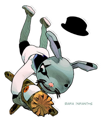 Por suerte, en este juego no ando solo pues a este Almanaque Wak! se han sumado un puñado de artistas (y amigos) que asumiendo el reto ofrecen visiones muy diferentes y sugestivas del asunto. Por las 80 páginas de este volumen veréis desfilar a los sospechosos habituales de números anteriores con apariciones estelares de Dalí y Ubú, homenajes a Magritte, delirantes historietas inconclusas y referencias a los límites del humor, la crisis de la página en blanco o el propio proceso creativo.